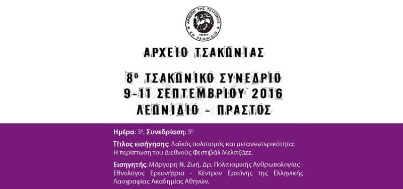 Εισηγητής: Μάργαρη Ν. Ζωή, Δρ. Πολιτισμικής Ανθρωπολογίας – Εθνολόγος Ερευνήτρια – Κέντρον Ερεύνης της Ελληνικής Λαογραφίας Ακαδημία Αθηνών (έγινε από τον κ.Καμηλάκη Παναγιώτη, λόγω αδυναμίας της κας Μάργαρη να παρευρεθεί) Το διεθνές φεστιβάλ Μελιτζάzz που λαμβάνει χώρα στο Λεωνίδιο αποτελεί μία από τις συνθετότερες μετανεωτερικές πολιτιστικές διοργανώσεις του ελλαδικού χώρου. Εκκινώντας από τις ζώσες παραδόσεις…